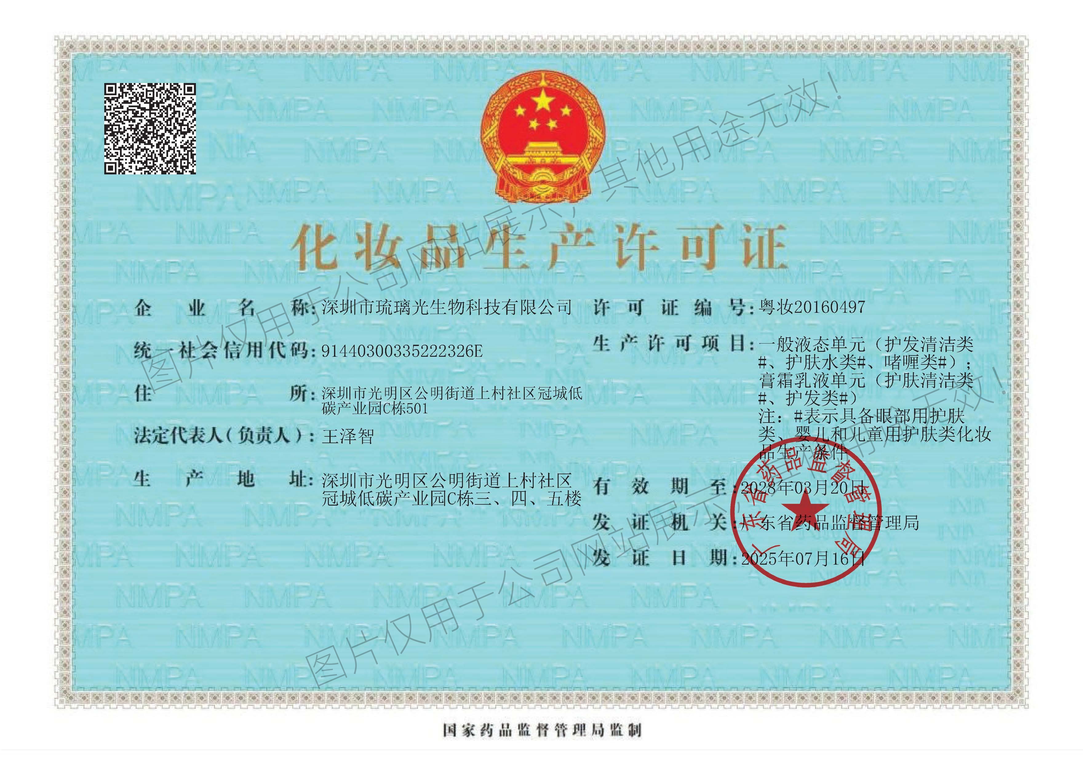 化妝品生產許可證正本